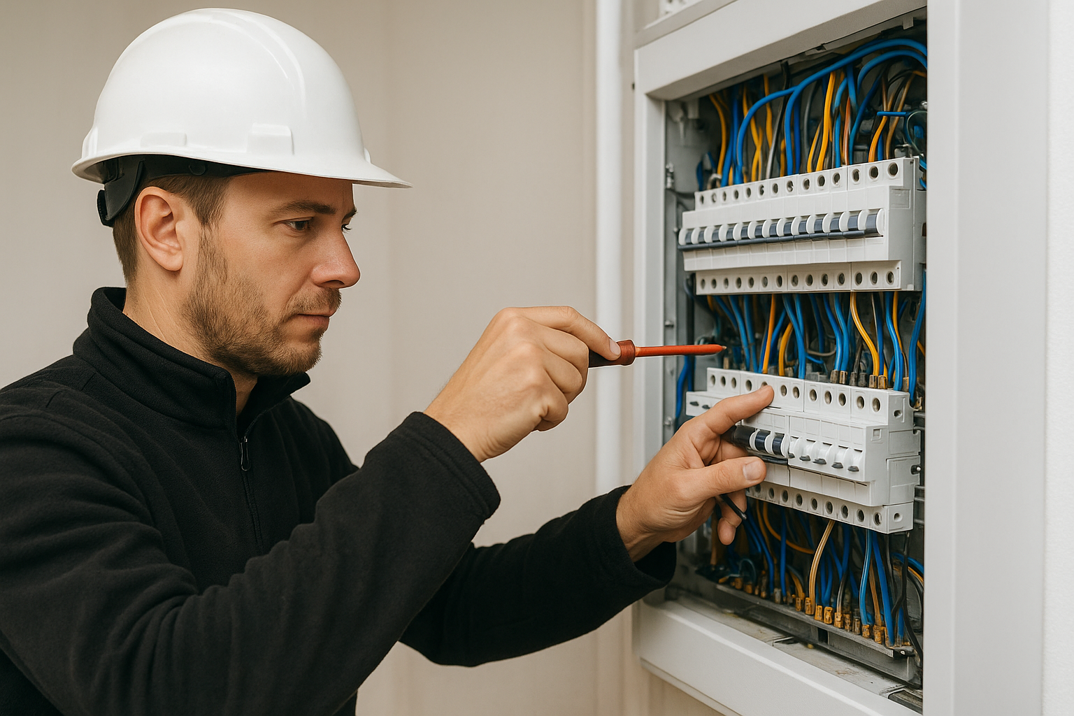 En behörig elektriker kan hjälpa dig med allt från att sätta upp nya eluttag, smart belysning och nätverkskablar till mer avancerade arbeten som installation av laddbox till elbil, uppgradering av elcentral eller integrering av energieffektiva lösningar som solceller.